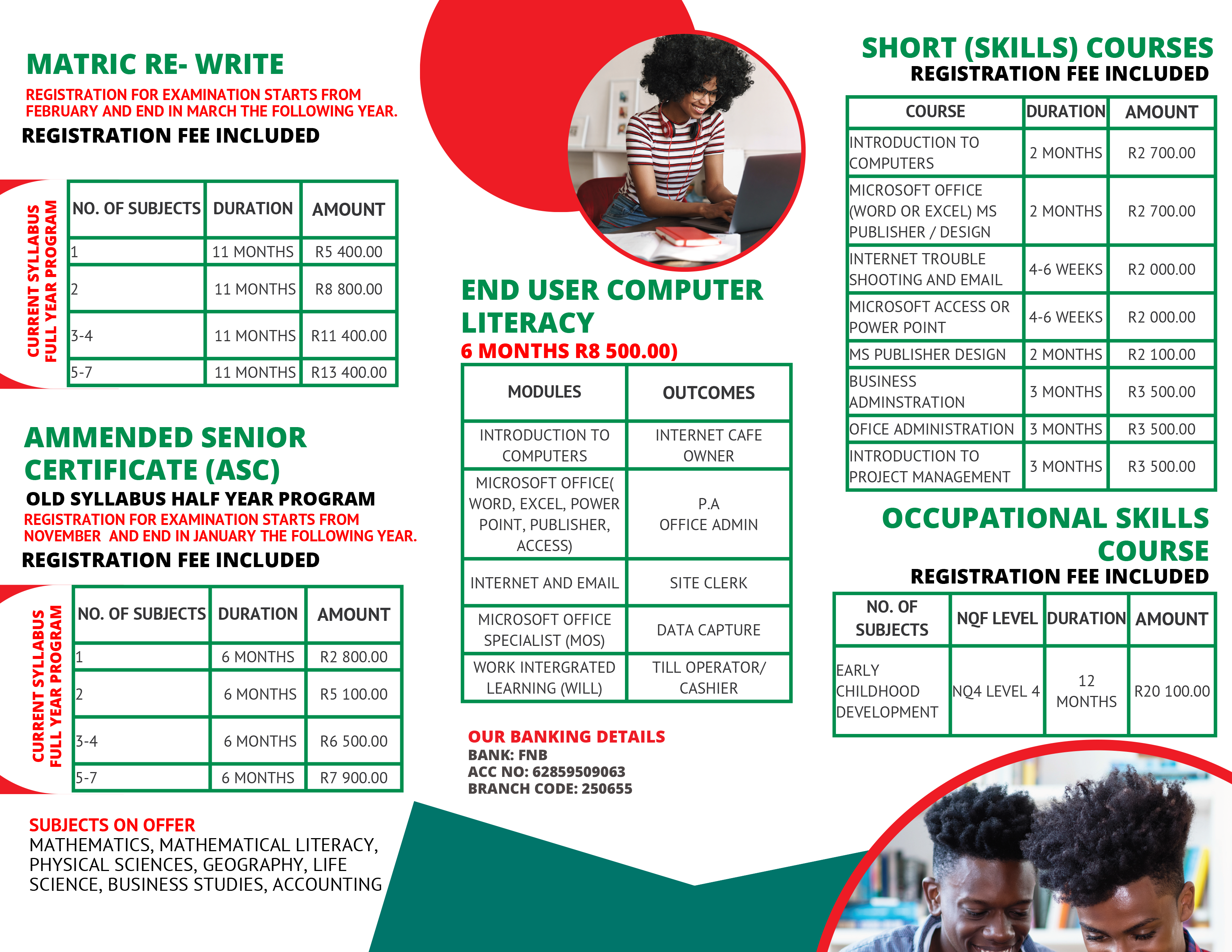 | 2 subjects | 11 months | R8,800.00 |