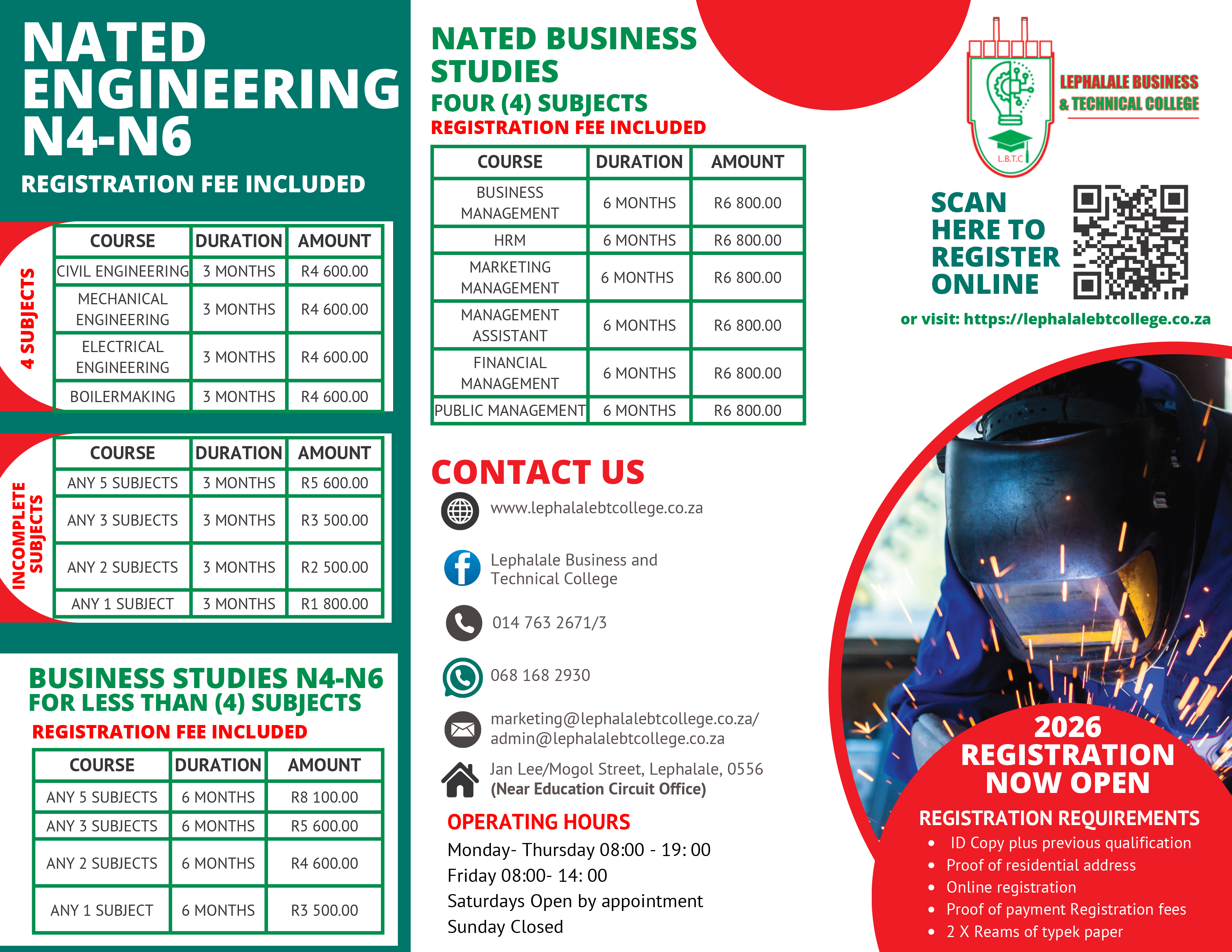 | Boiler Making N2-N4 | 3 months | R4,600.00 |